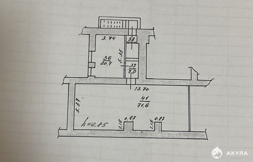 Высота потолка 2, 85 м.