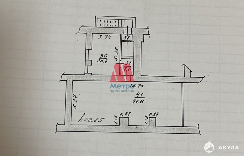 Площадь 100, 5 кв.м, объект состоит из входного коридора, помещения 20 кв.м. и помещения 71 кв.м. Отдельный вход со двора дома.