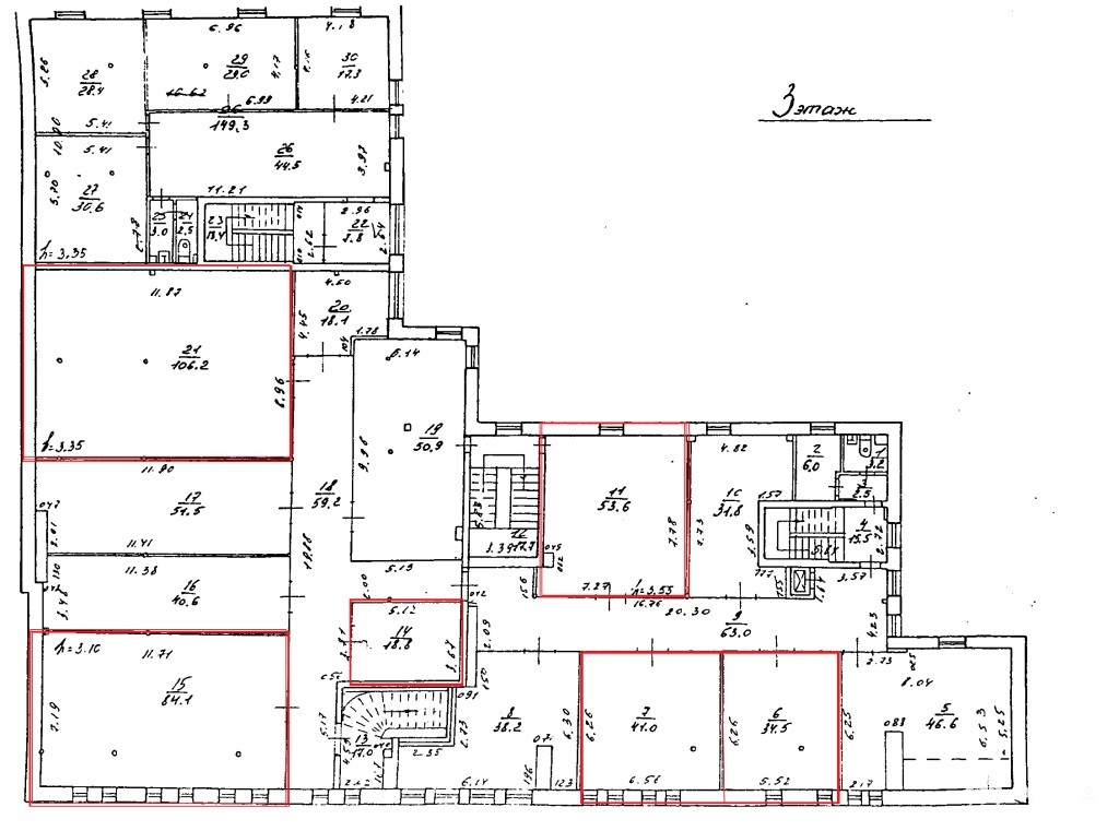 Общая площадь: 53, 6м². Есть другие площади от 19 до 107м2