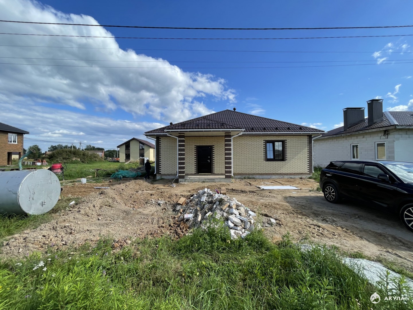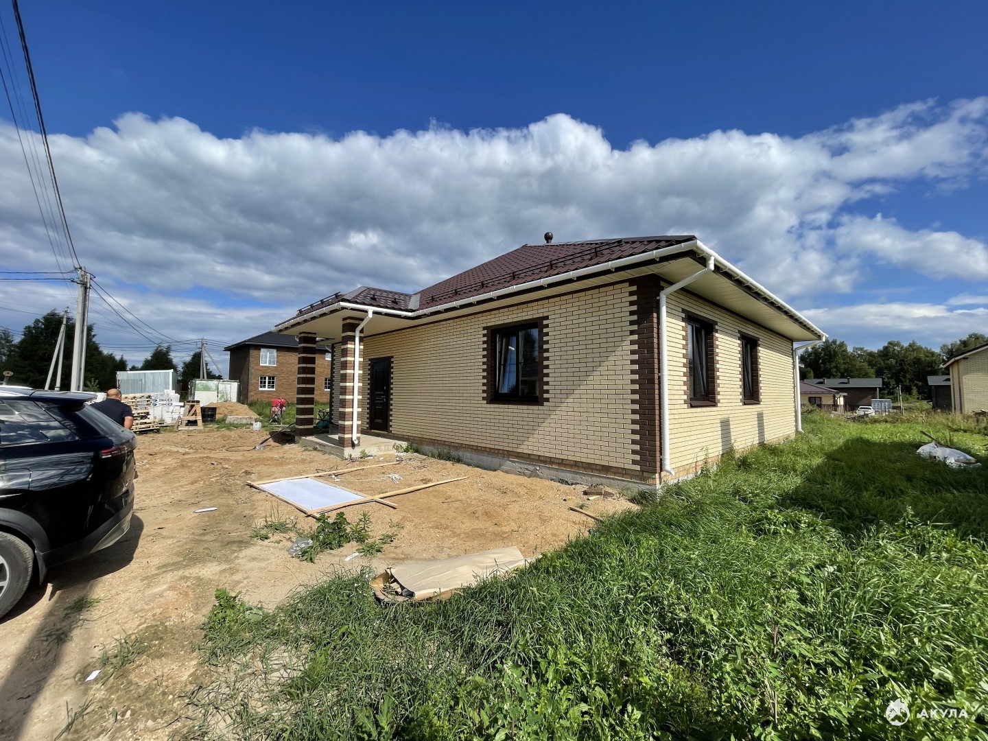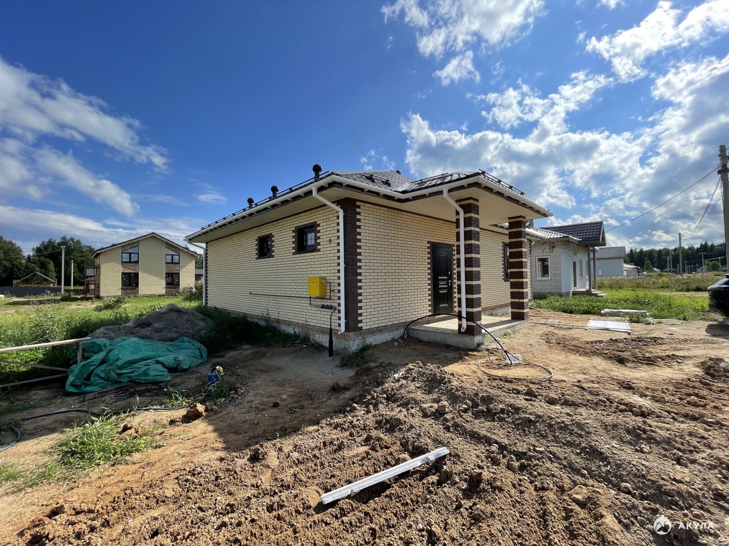 - Крыша: Металлочерепица, устойчивая к атмосферным воздействиям и долговечная.