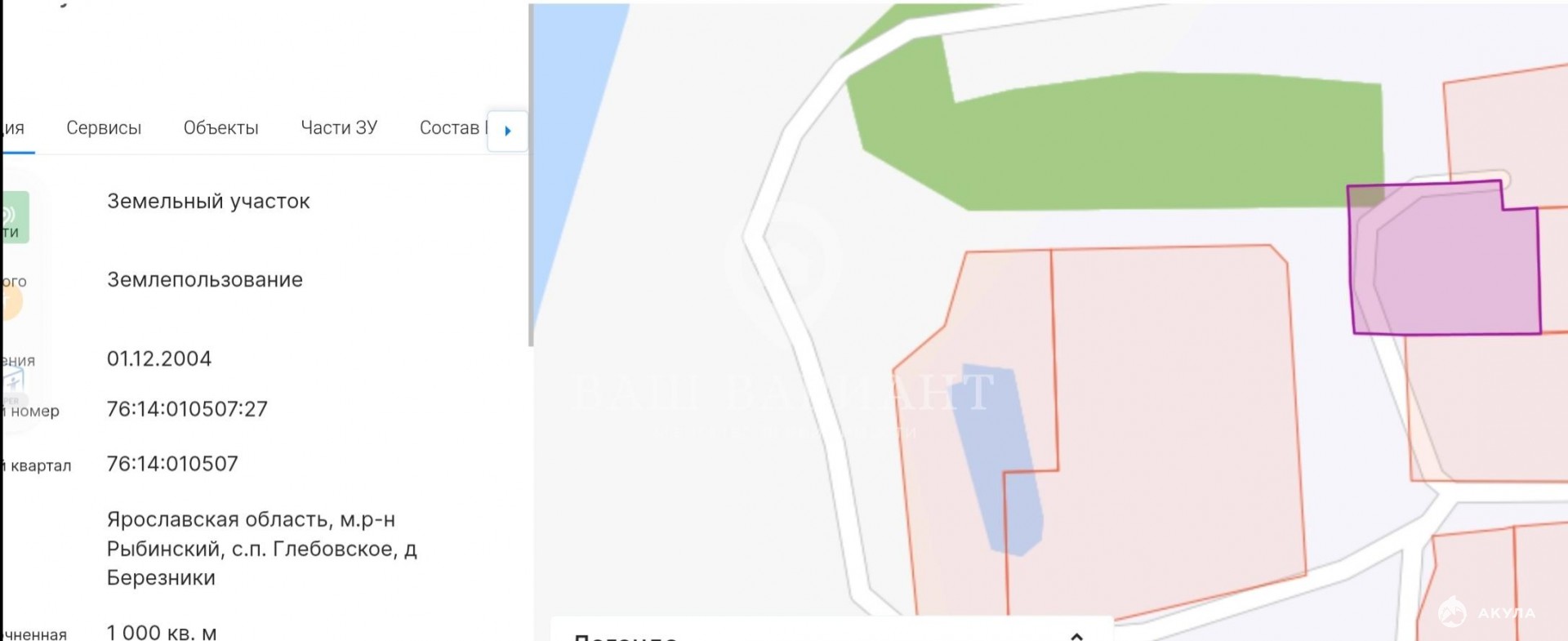 - Площадь участка