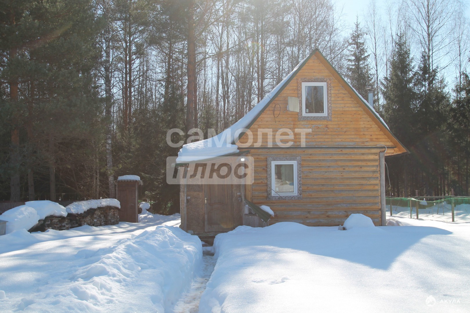 - Баня: сруб на сваях 6×4 м (50 кв. м) с пристройкой 2×4 м. Обработана акриловым герметиком для утепления. Оборудована для проживания в любое время года.