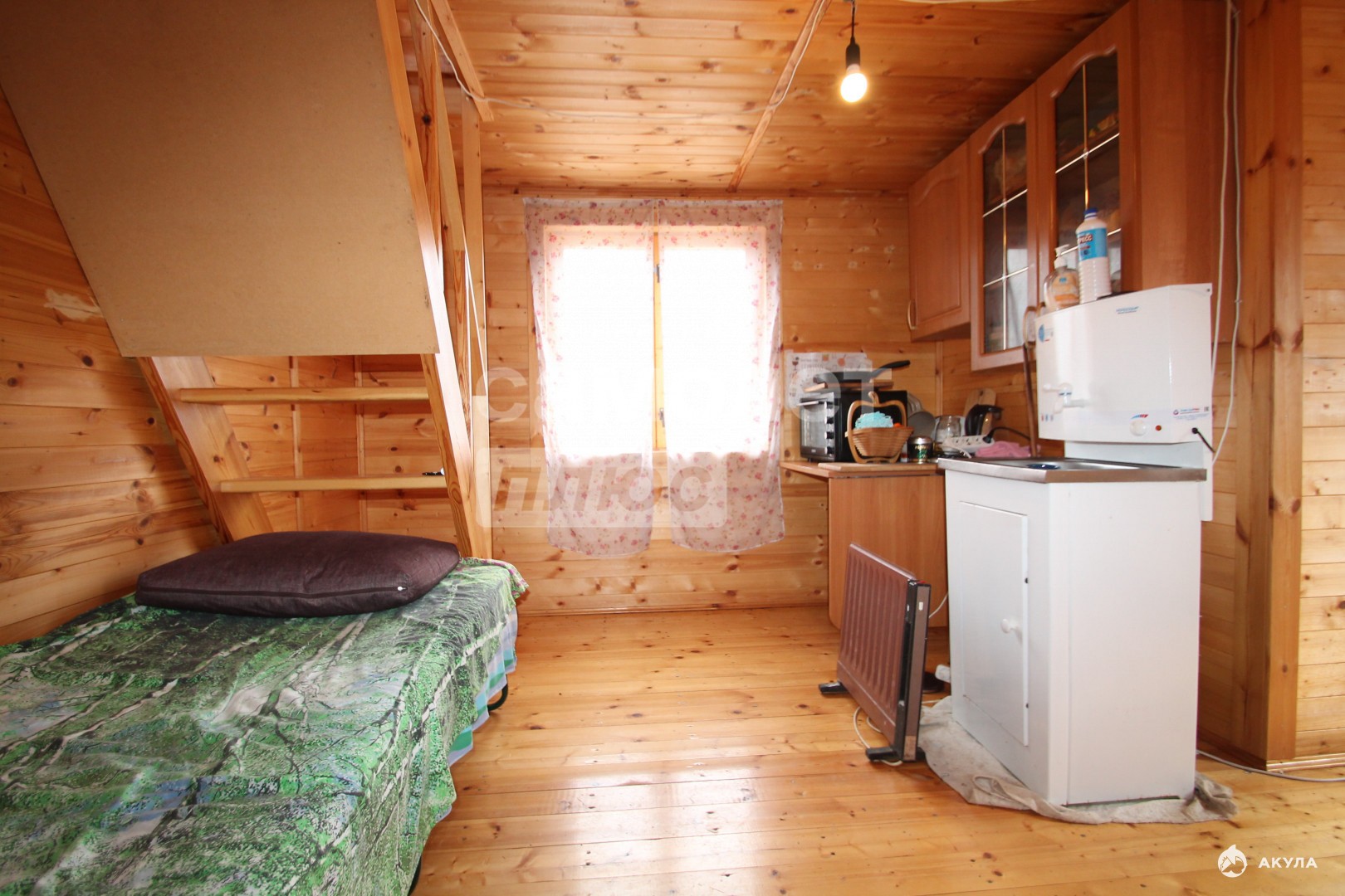 2-этажная баня, полностью пригодная для круглогодичного проживания.Отопление: печное.1 этаж: оборудованная кухня.2 этаж: уютная спальня.Вода: из колодца.