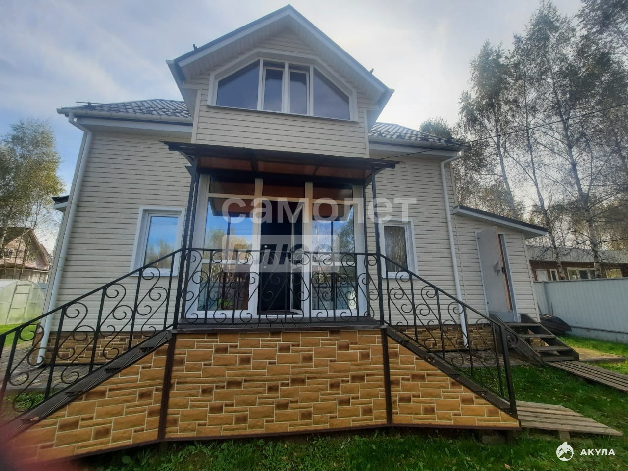 Дом построен на надежном ленточном армированном фундаменте, из бруса, обшит сайдингом, Крыша из металлочерепицы, установлены снегодержатели.