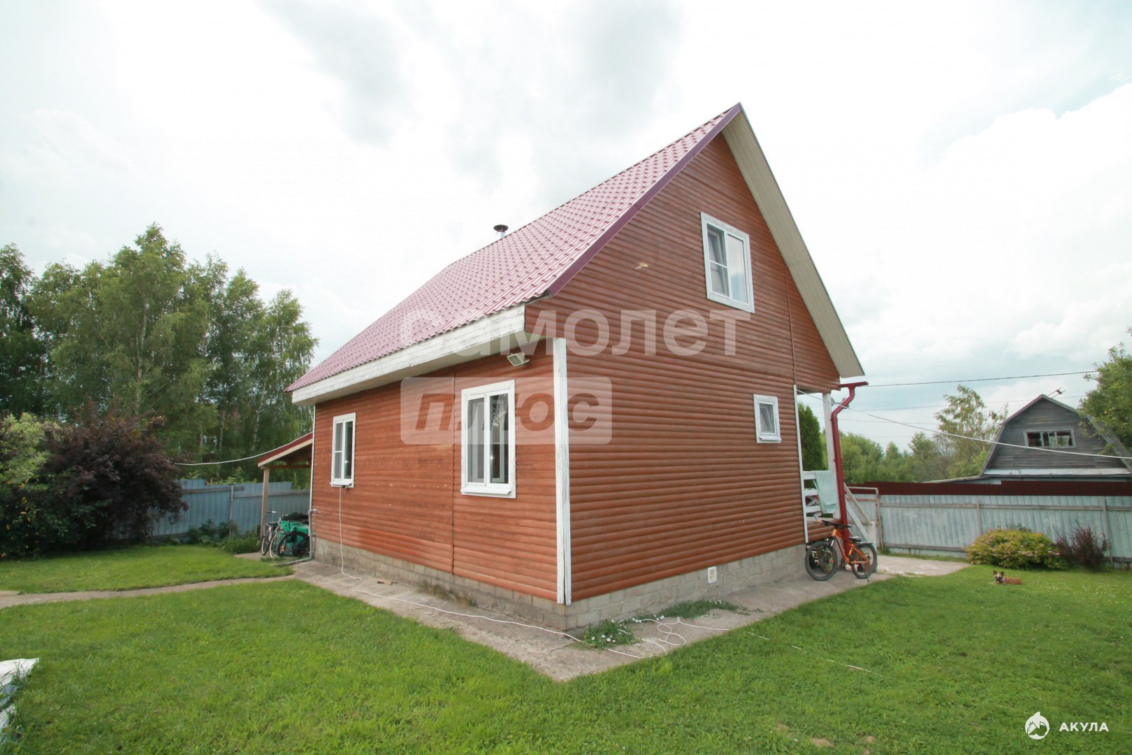Участок 9 соток, полностью огорожен по всему периметру, есть ворота и парковка. На участке есть хозяйственное помещение, уличный туалет, беседка с зоной барбекю, отличная баня 36 кв.м с парилкой, комнатой для отдыха, терраса, стиральная машина. Участок полностью благоустроен, различные насаждения, всё сделано для себя, с любовью и с душой.