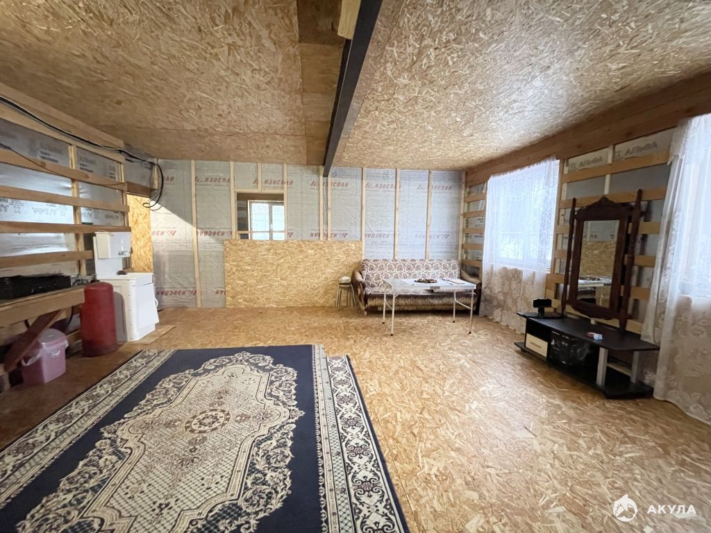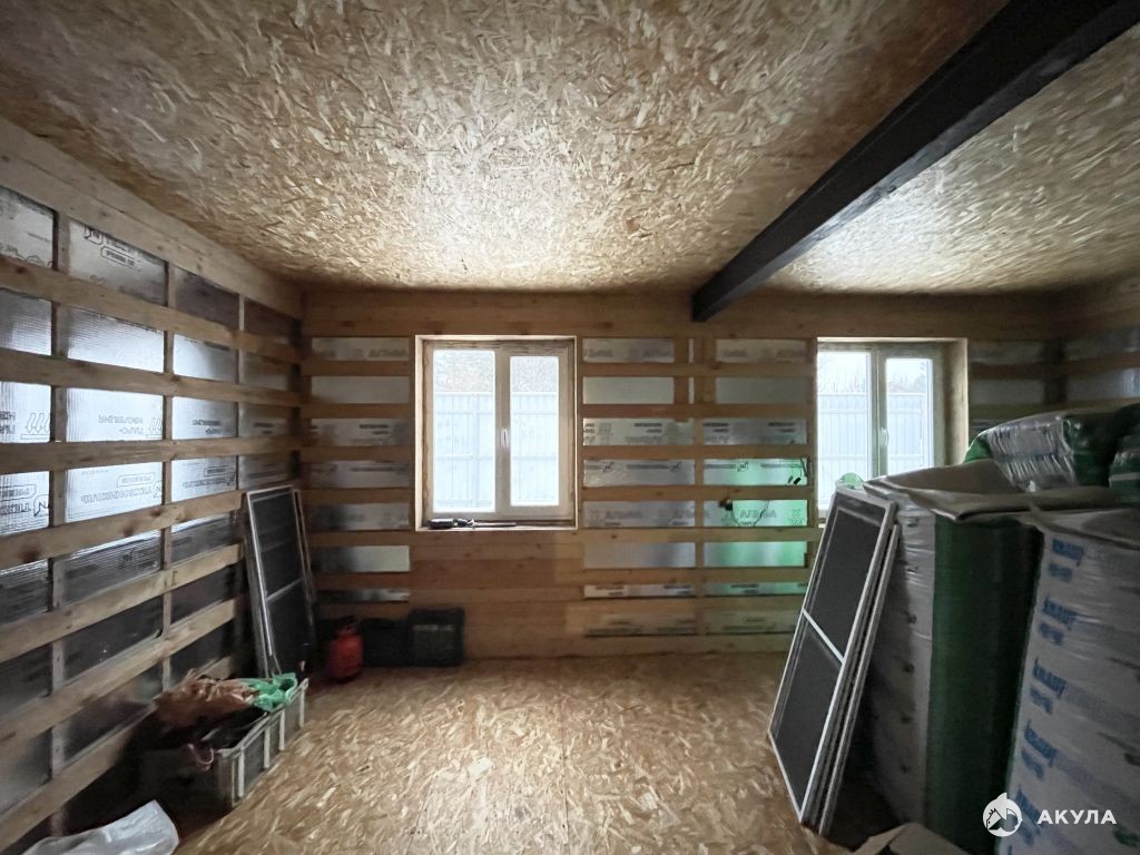 Планировка - крыльцо, большая прихожая, с/у раздельный, большой зал, комната, кухня. Второй этаж свободной планировки без отделки.