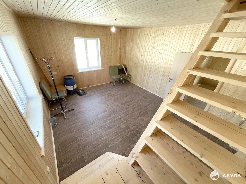 Планировка: Прихожая, кухня, санузел, сауна с душевой. На втором этаже две спальни.