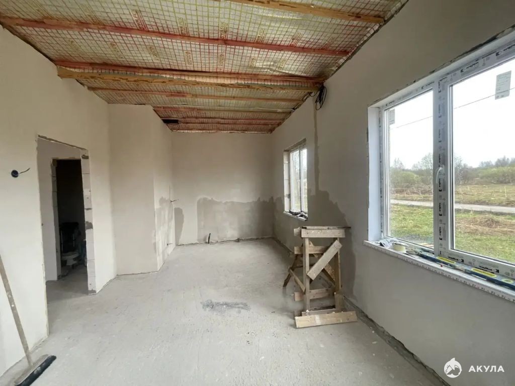 Планировка - прихожая, кухня-гостиная, две спальни, с/у. На втором этаже одна большая комната, можно разделить на две.
