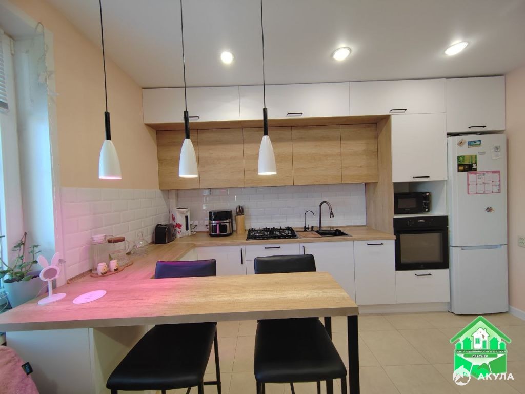 В доме сделан качественный ремонт, имеется три комнаты + кухня-гостинная, 2 санузла и веранда. Покупателям остается кухонный гарнитур со встроенной техникой, мебель по договоренности.