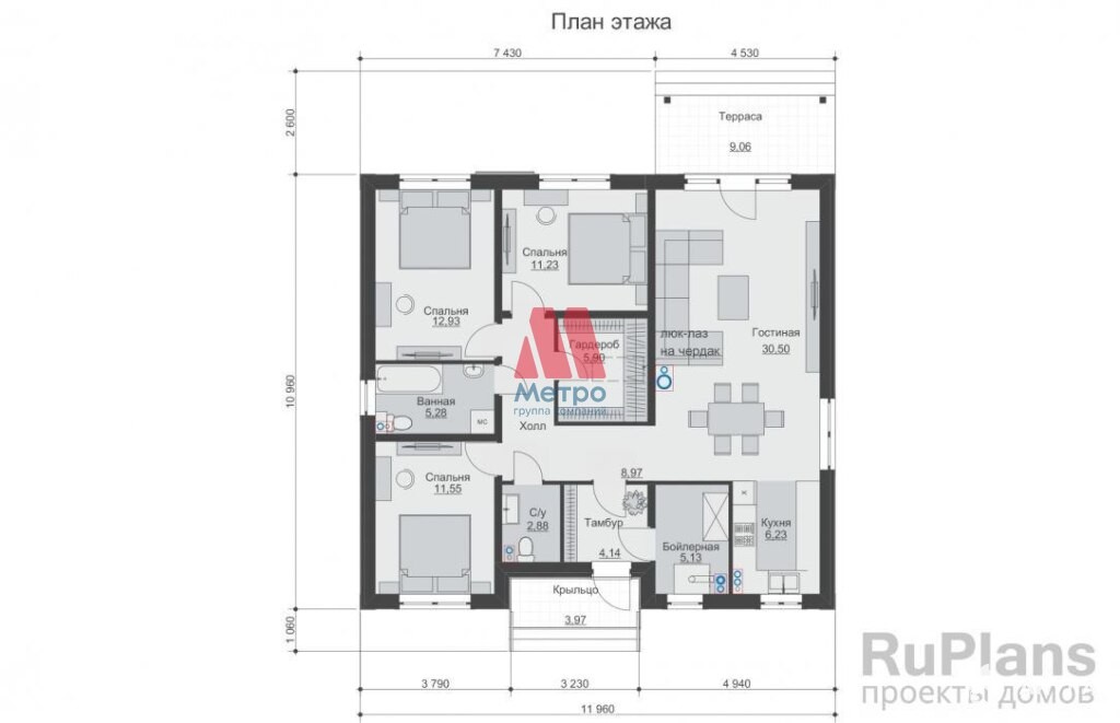 Жилой дом, общей площадью 130 м2, практичной планировки, одноэтажный