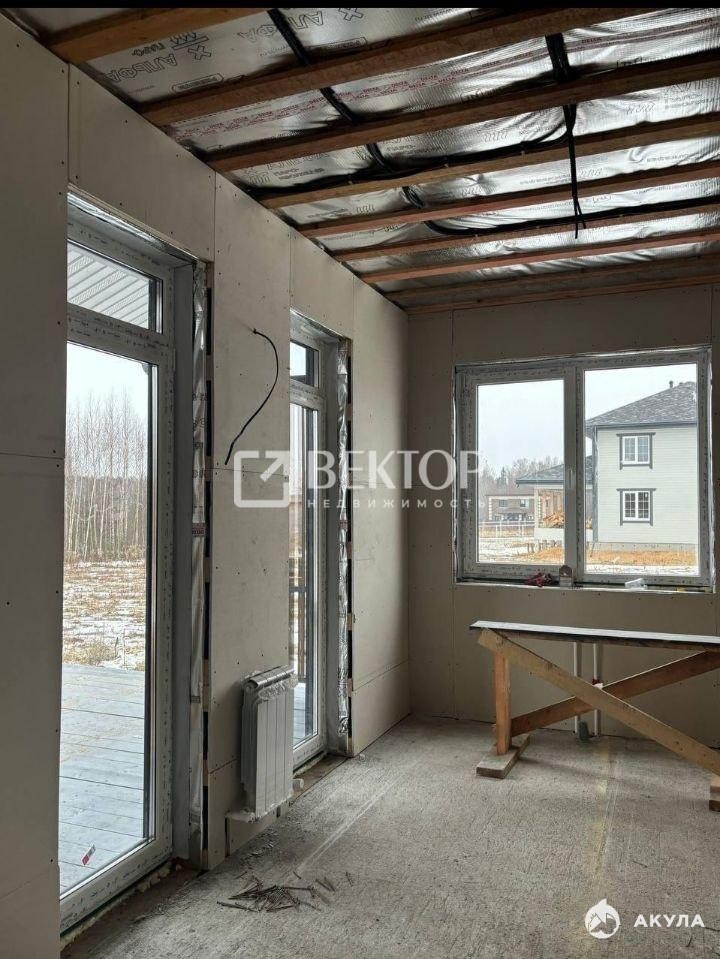 - Внутренняя отделка — стены обшиты гипсокартоном (ГКЛ) толщиной 12 мм, без шпаклёвки, без оконных и дверных откосов.