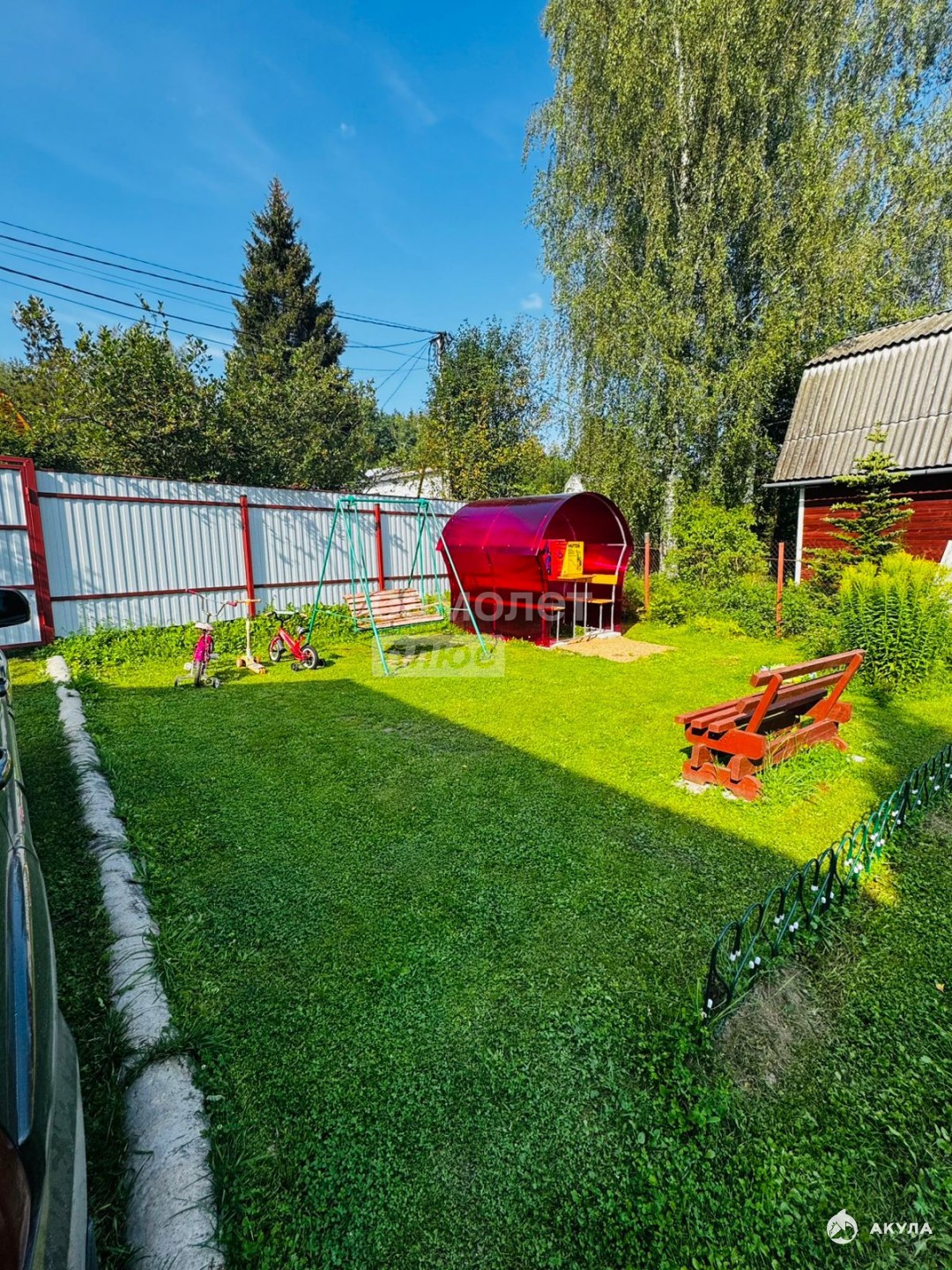 Участок:Площадь: 6 сотокСостояние: ухоженный, сухой, правильной формыЗабор: по периметруНа участке расположены баня-бочка, хозблок, уличный душ, туалет, теплица, беседка, качели. Категория земель: садовое некоммерческое товарищество (СНТ). Подъезд: круглогодичный, грунтовая дорога Транспортная доступность: рядом остановка общественного транспорта.
