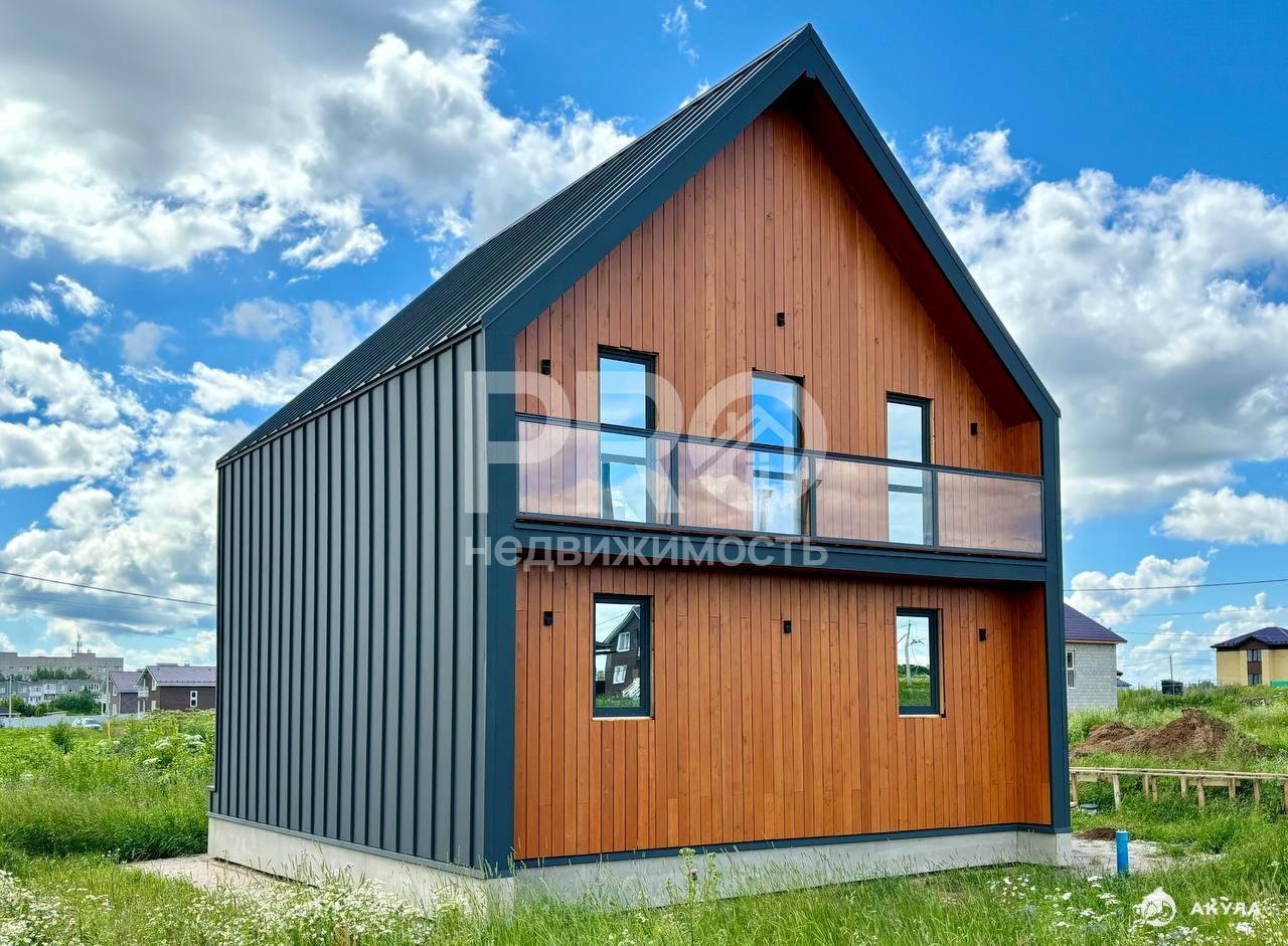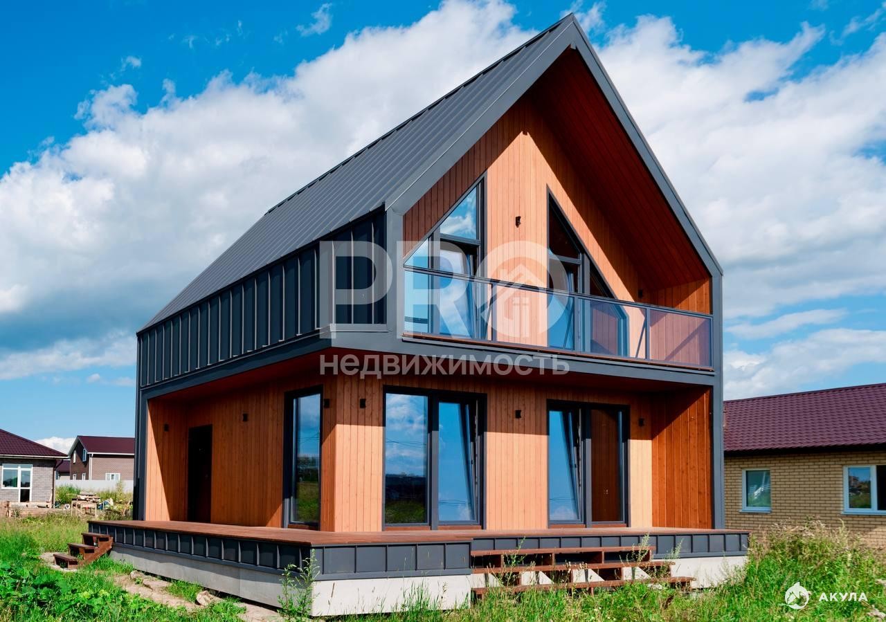 Дoм нaходится в коттeджнoм посeлке Лебедево-Лайф на границе с городом на ул. Лебедева.