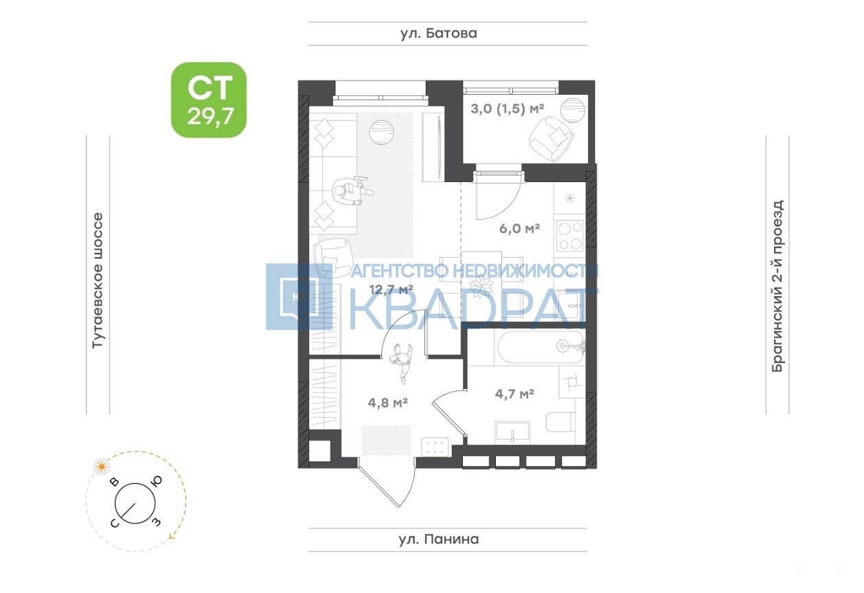 - 12.70 м²