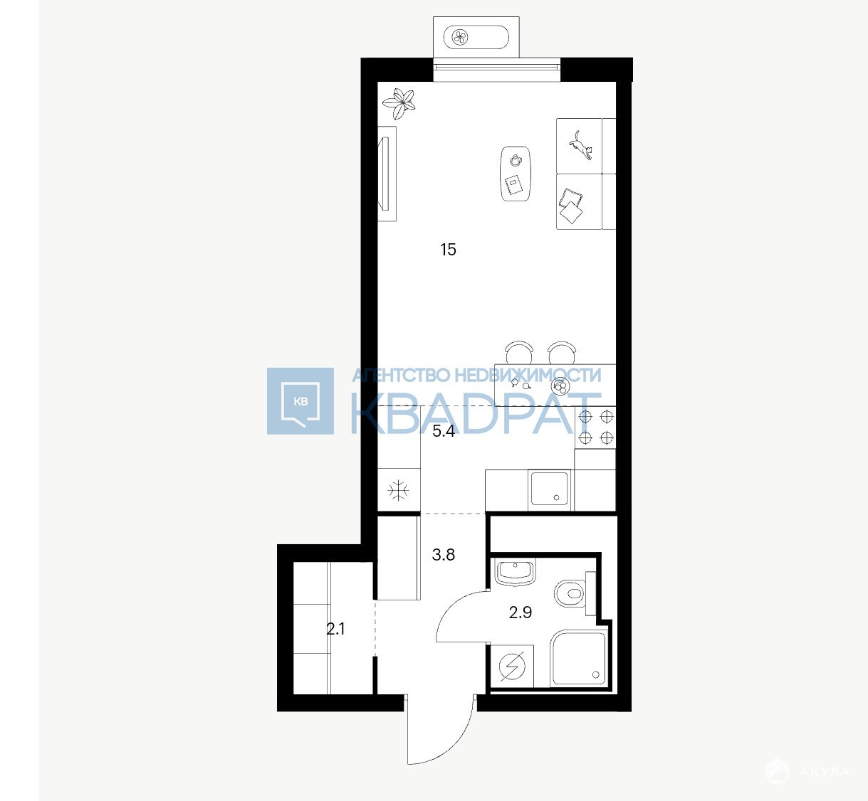 - 15.00 м²