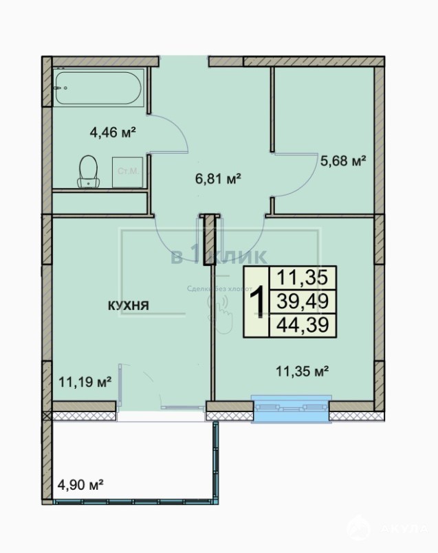 - 11.35 м²