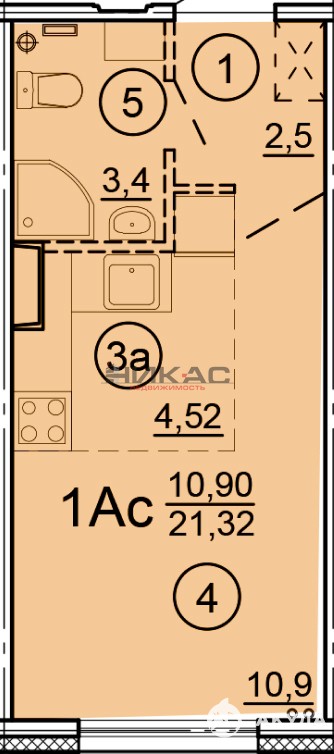 1 комнатная квартира - студия с чистовой отделкой!