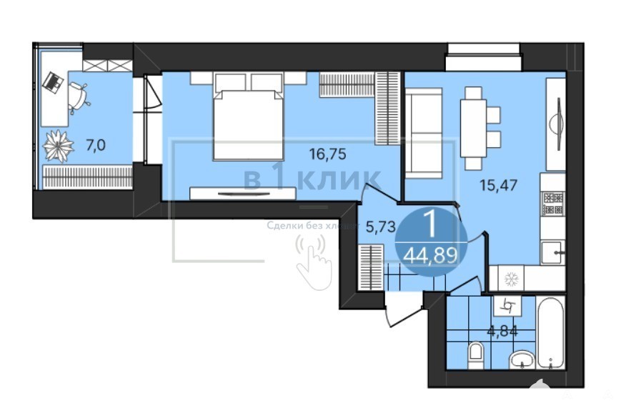 - 1-комнатные квартиры распашного типа