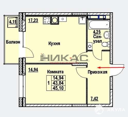 Последняя 1 комнатная квартира 45, 1 кв.м.