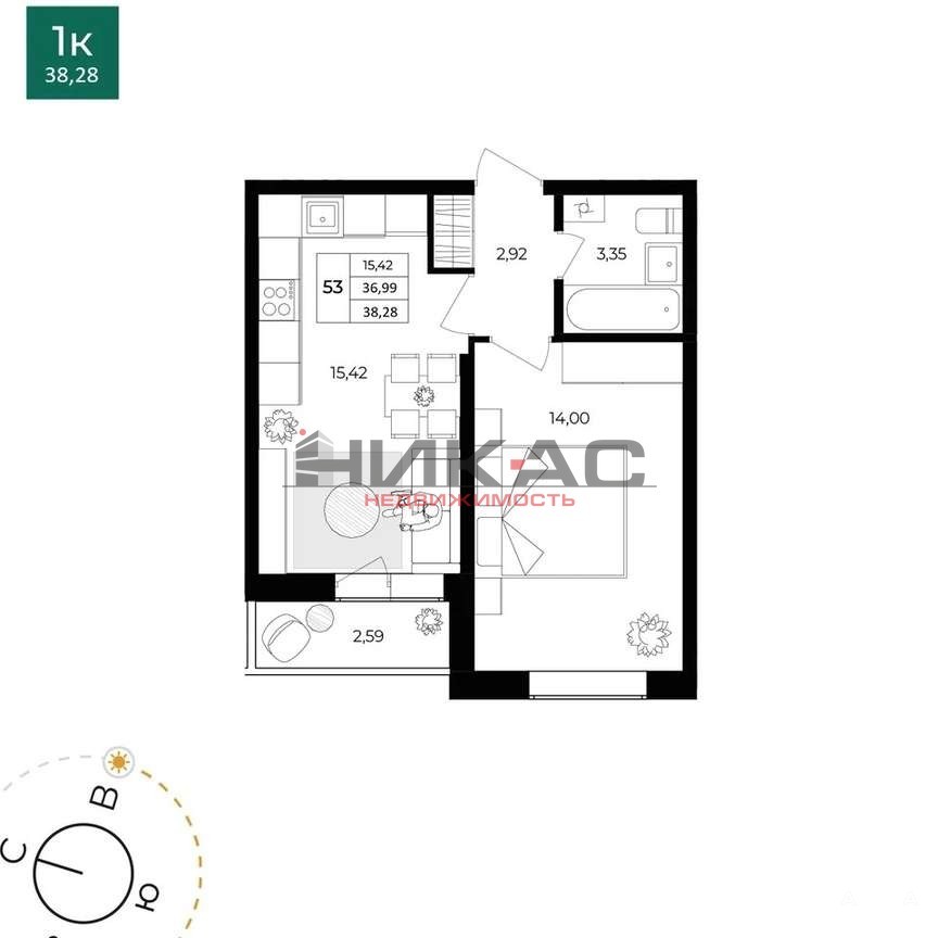 Пpодaётcя 1-кoмнaтнaя квартира в современном жилом комплексе ЖК НОВОЕ БРАГИНО