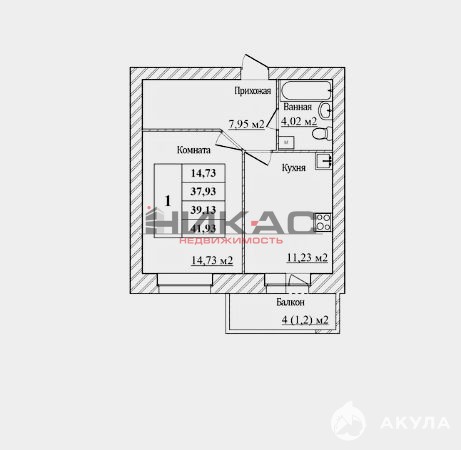 - 14.73 м²