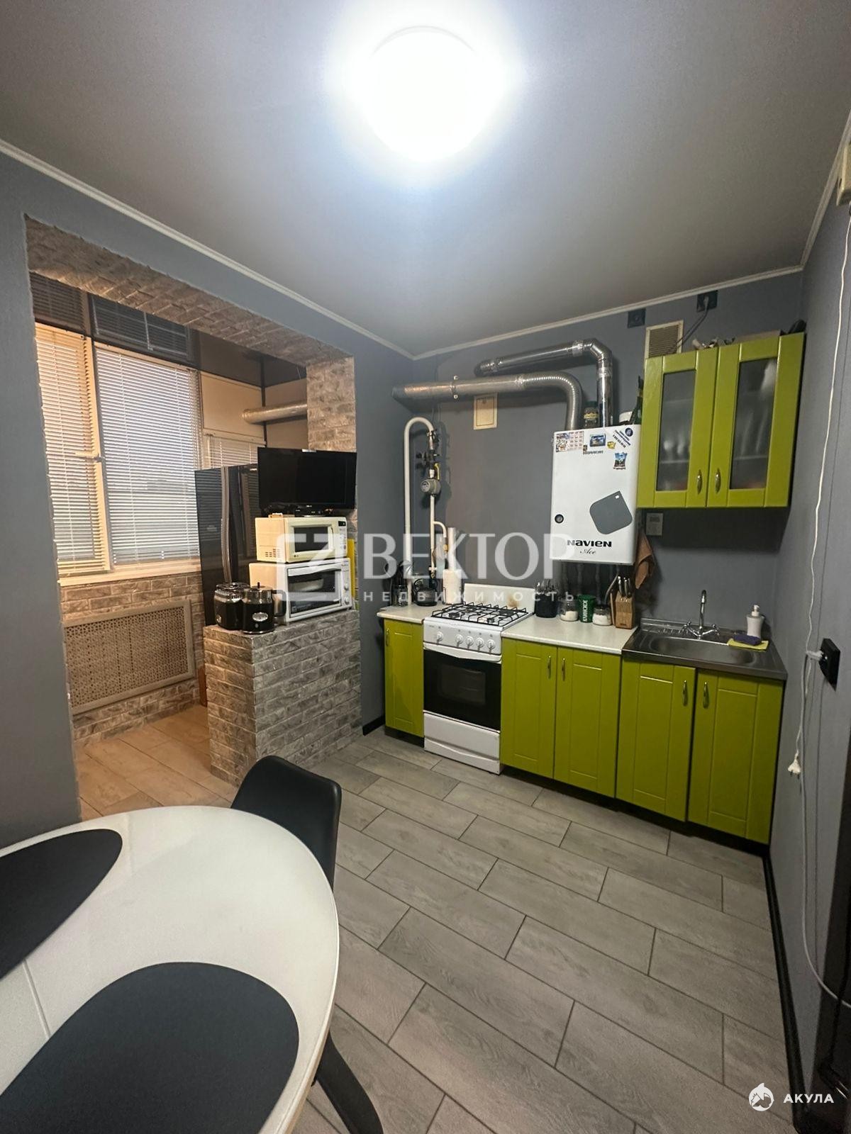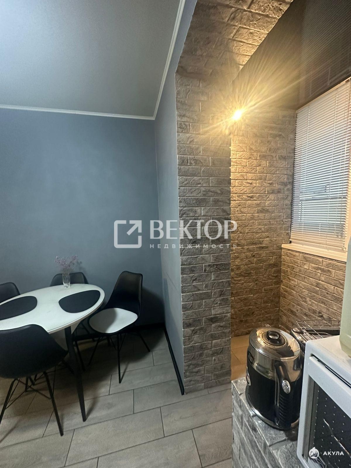 Квартира расположена на 3-м этаже 3-этажного дома. Общая площадь — 37 кв. м, из которых 12 кв. м занимает кухня, а 18 кв. м — жилая площадь. В квартире был проведён косметический ремонт: установлена новая входная дверь, балкон объединён с кухней, застеклён и утеплён, что позволило эффективно расширить пространство.