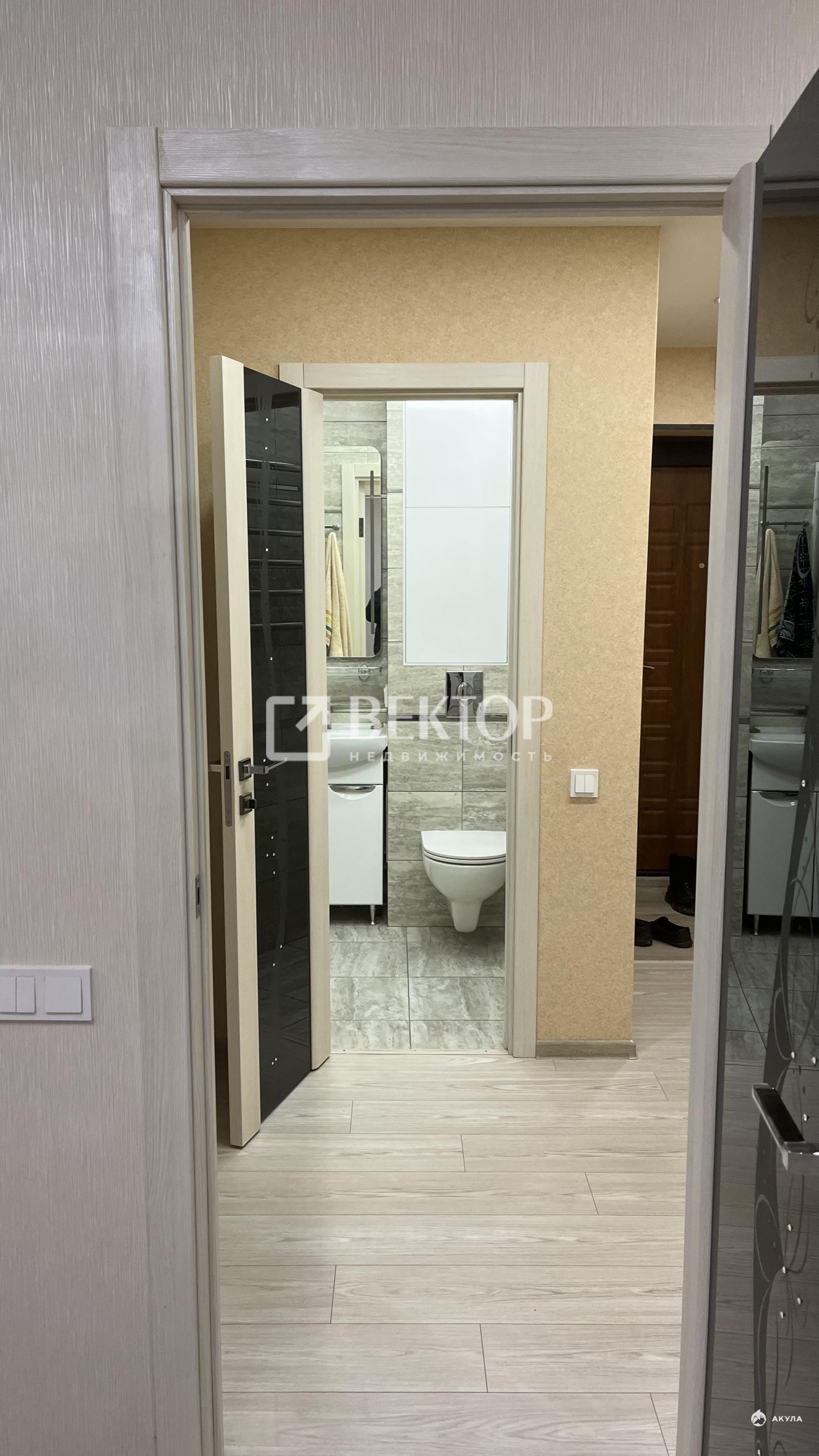 В квартире выполнен дизайнерский ремонт высокого качества — можно сразу заселяться и наслаждаться комфортом. Заменены межкомнатные двери и окна, установлен натяжной потолок, на полу в комнате и прихожей уложен ламинат, а в кухне, санузле и у входной двери — плитка. Отопление доработано, установлены дополнительные розетки. Санузел совмещённый, отделан плиткой, оборудован тёплым полом. Кухня выполнена по индивидуальному проекту с использованием современной бытовой техники. В комнате установлен инверторный кондиционер Ballu.