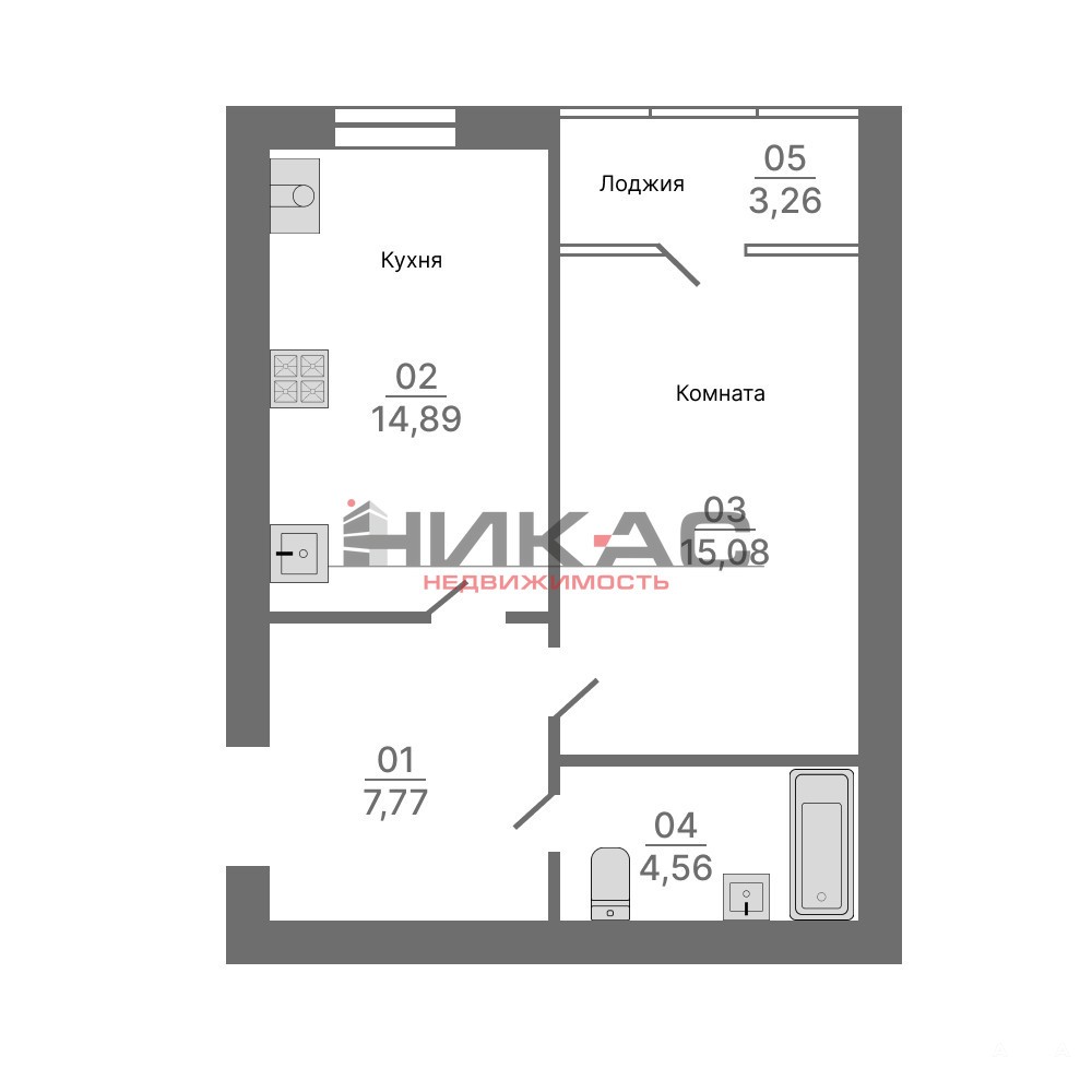 Комфортная планировка: просторная кухня 14, 89 кв.м., изолированная комната 15, 08 кв.м., застекленная лоджия, совмещенный сан. узел, просторная прихожая.
