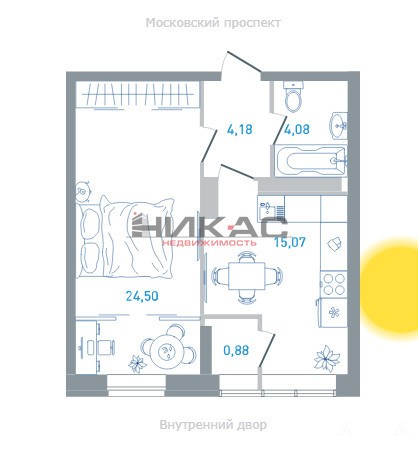 Продается 1 комнатная квартира общей площадью 51.8 кв.м. в жилом комплексе бизнес-класса расположенном в престижном районе города на Московском проспекте.