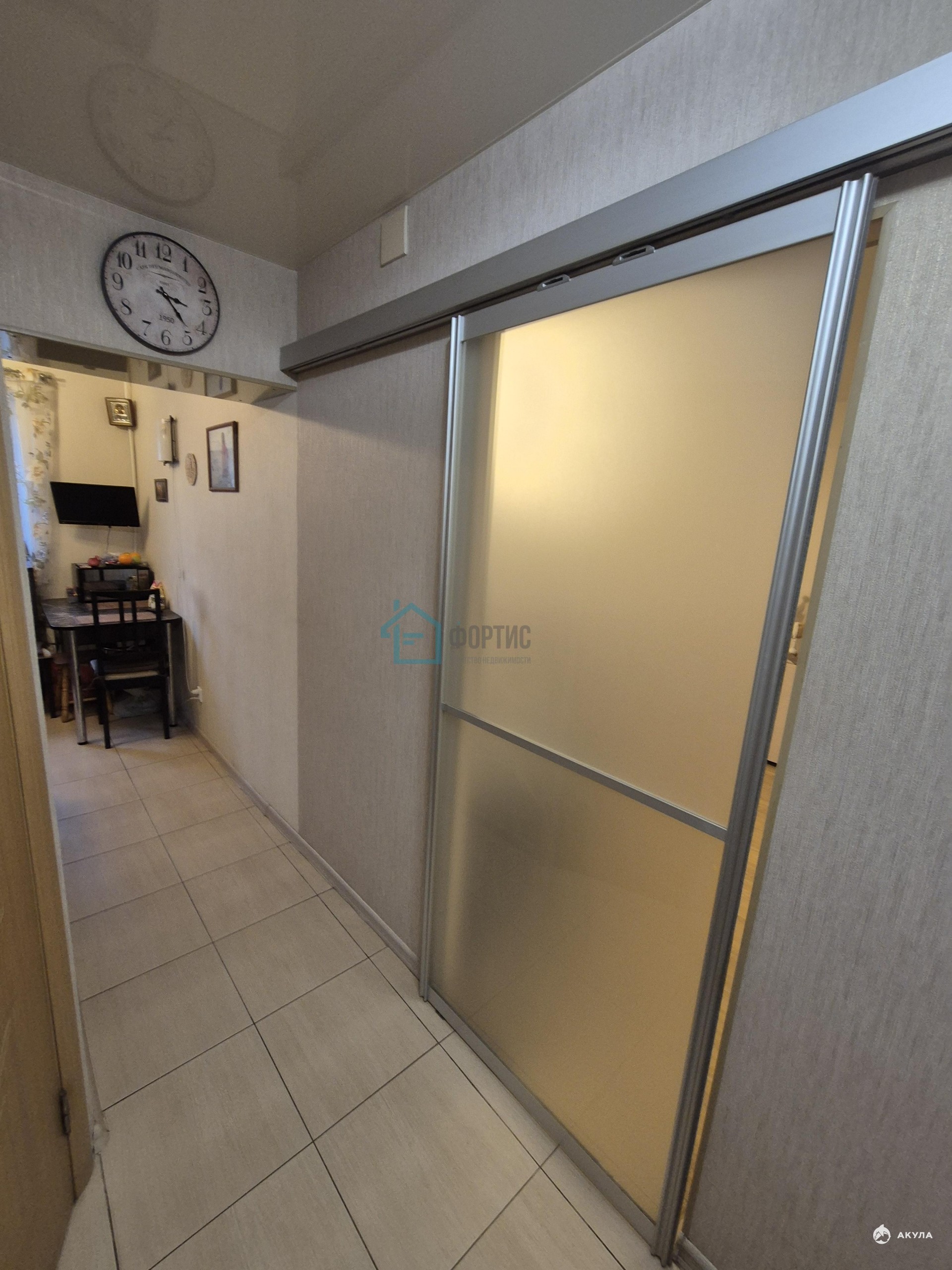 - В коридоре, кухне и санузле на полу плитка, в комнате ламинат. Стены - однотонные обои. Двойная входная дверь, обеспечивающая хорошую звукоизоляцию. Дверь в комнату раздвижная, за счет чего экономится пространство.