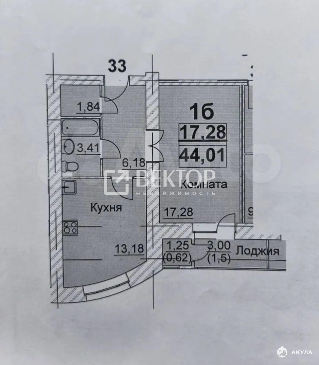 - 17.3 м²