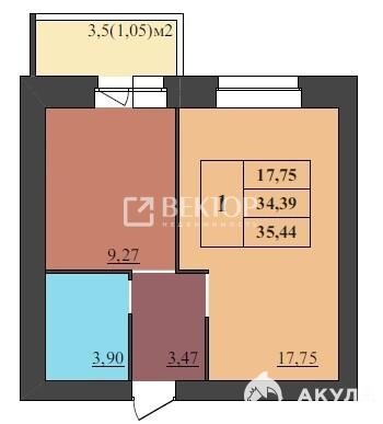 - 17.75 м²