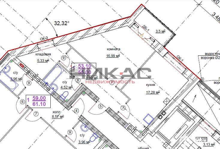 - 17.23 м²