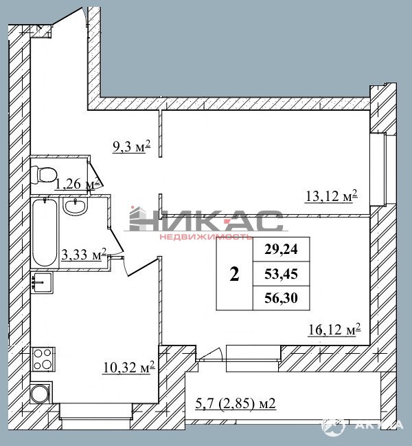 - 56 м²
