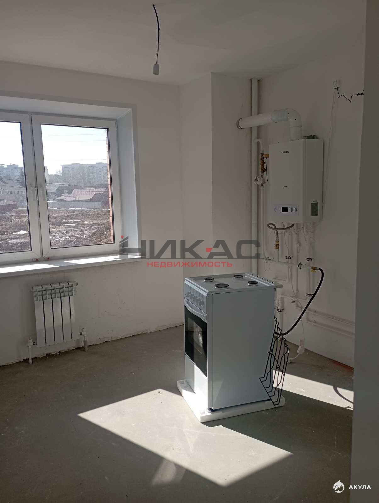 Предчистовая отделка: залиты полы, штукатурка и шпаклевка стен, выполнена разводка сантехники, электрика (выключатели, розетки), установлены счетчики воды и газа, качественная входная дверь, газовая плита, газовый котел, радиаторы отопления.