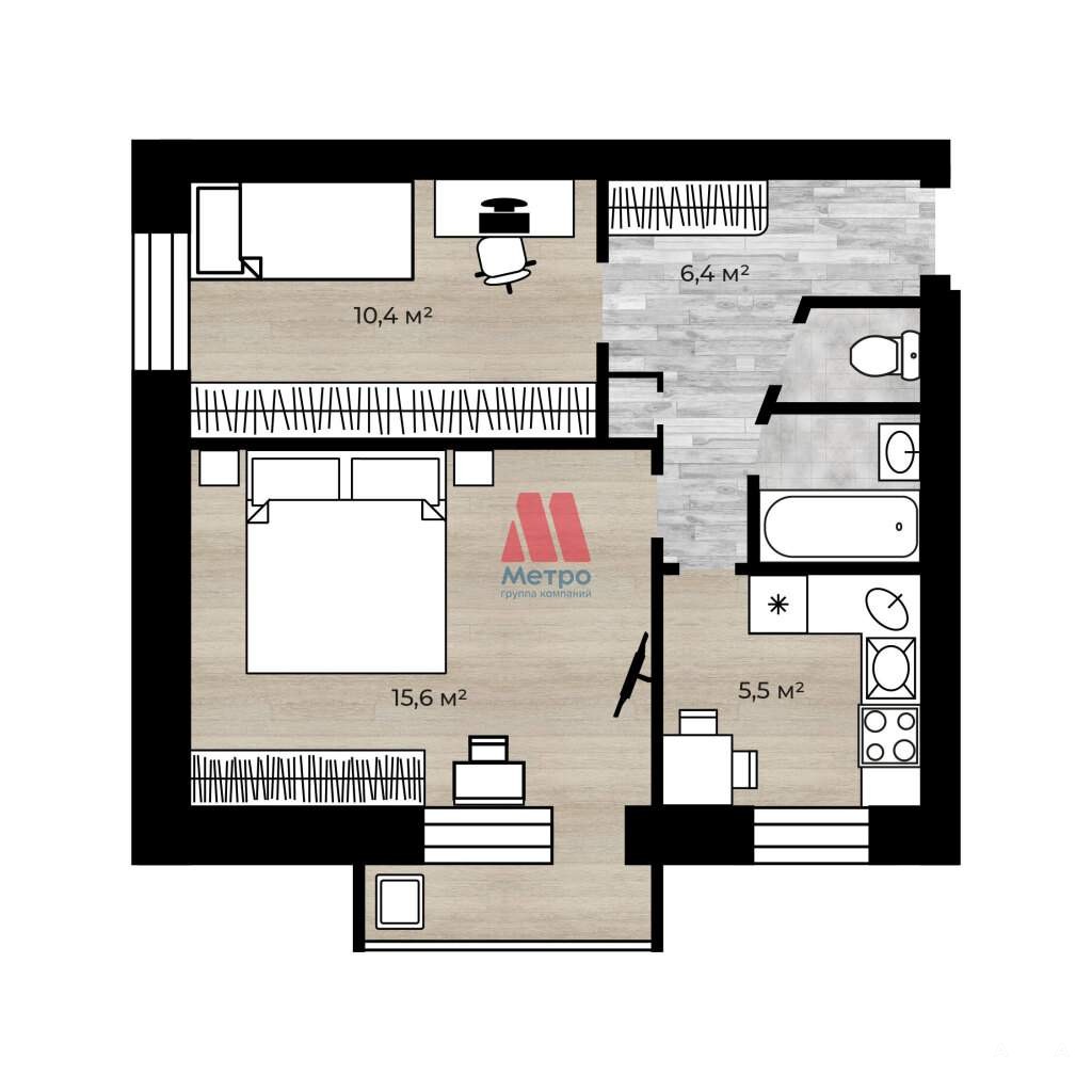 Общая площадь: 41, 2 м