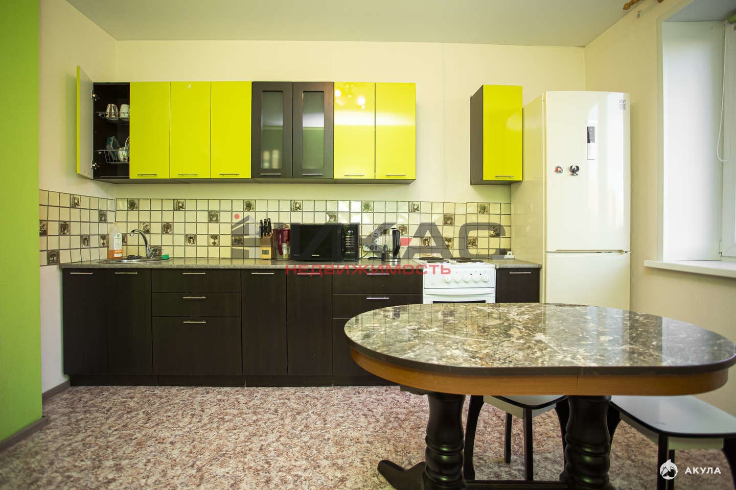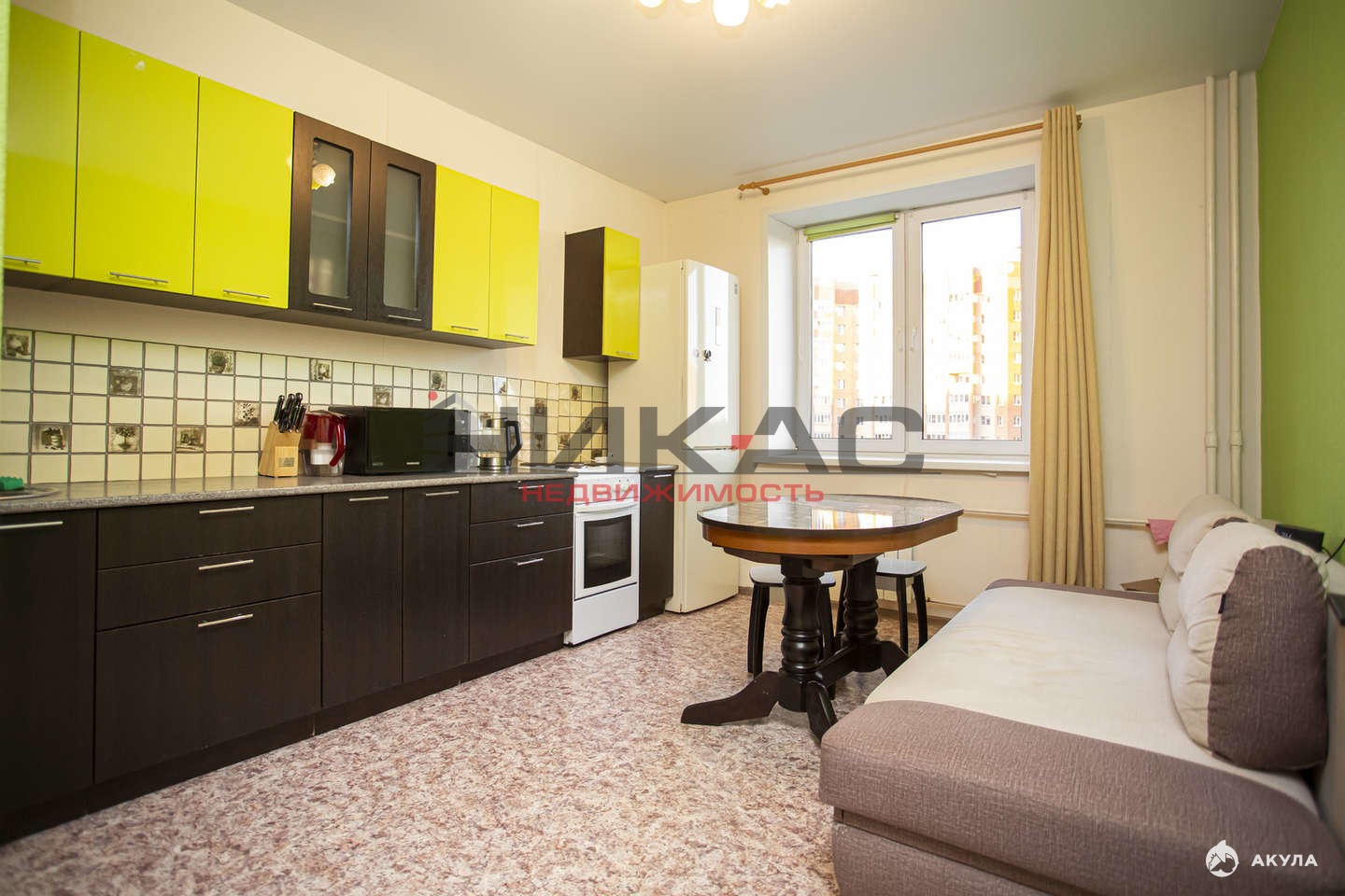 В квартире остается вся мебель и кухонный гарнитур в подарок новым собственникам. Техника по договоренности.