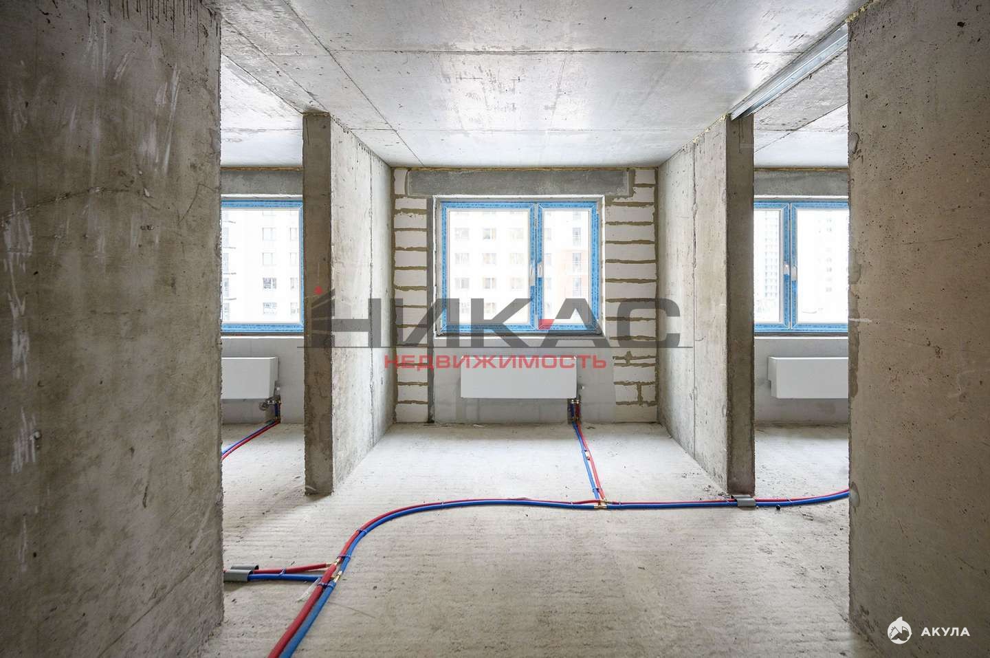 Квартира без отделки: установка окон, входной двери, остекление балконов, система вентиляции, разводка труб и подключение радиаторов отопления, монтаж вертикальных стояков водоснабжения с отводами и установкой приборов учета, ввод электрического кабеля в помещение, устройство квартирного щита (автомат и розетка).