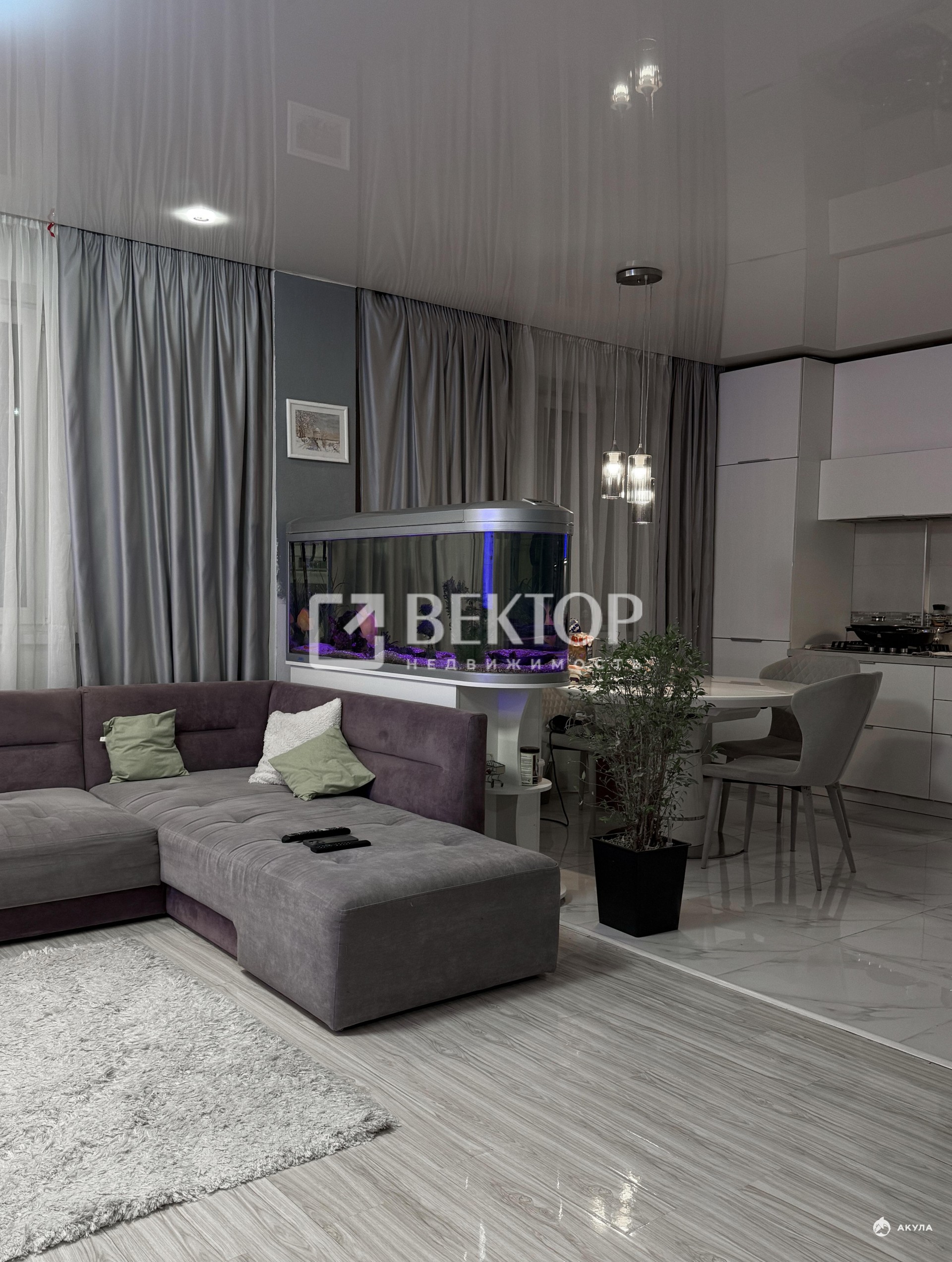 Пространство общей площадью 62, 2 м², выполнен евроремонт. Светлая кухня площадью 14 м², совмещенная с залом, где для вашего удобства установлены теплые полы.