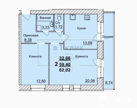 - 32.86 м²