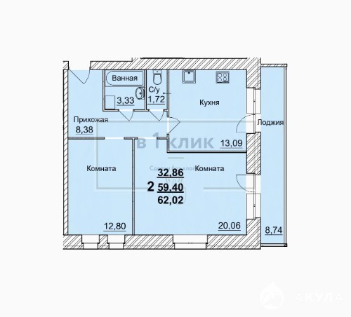 - 32.86 м²