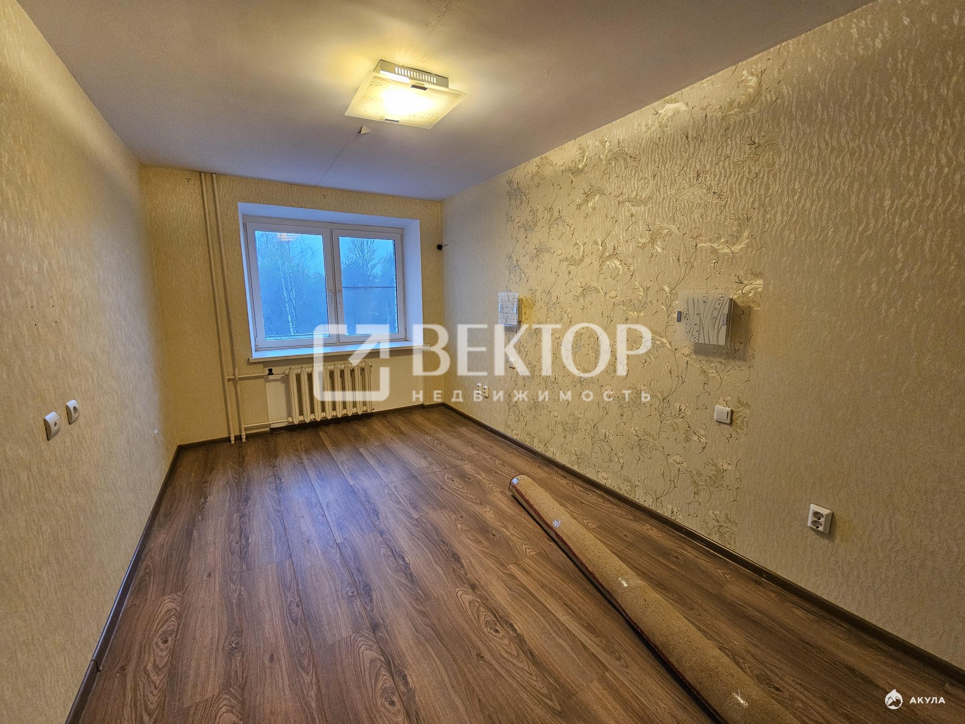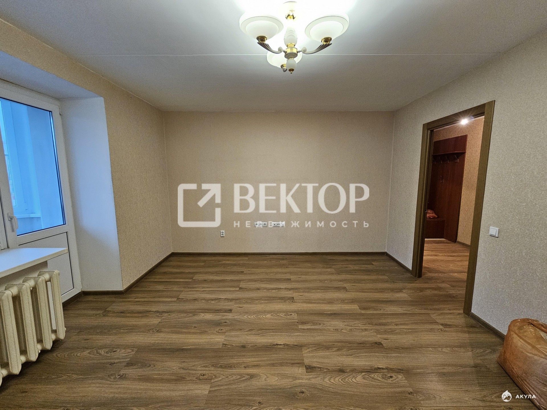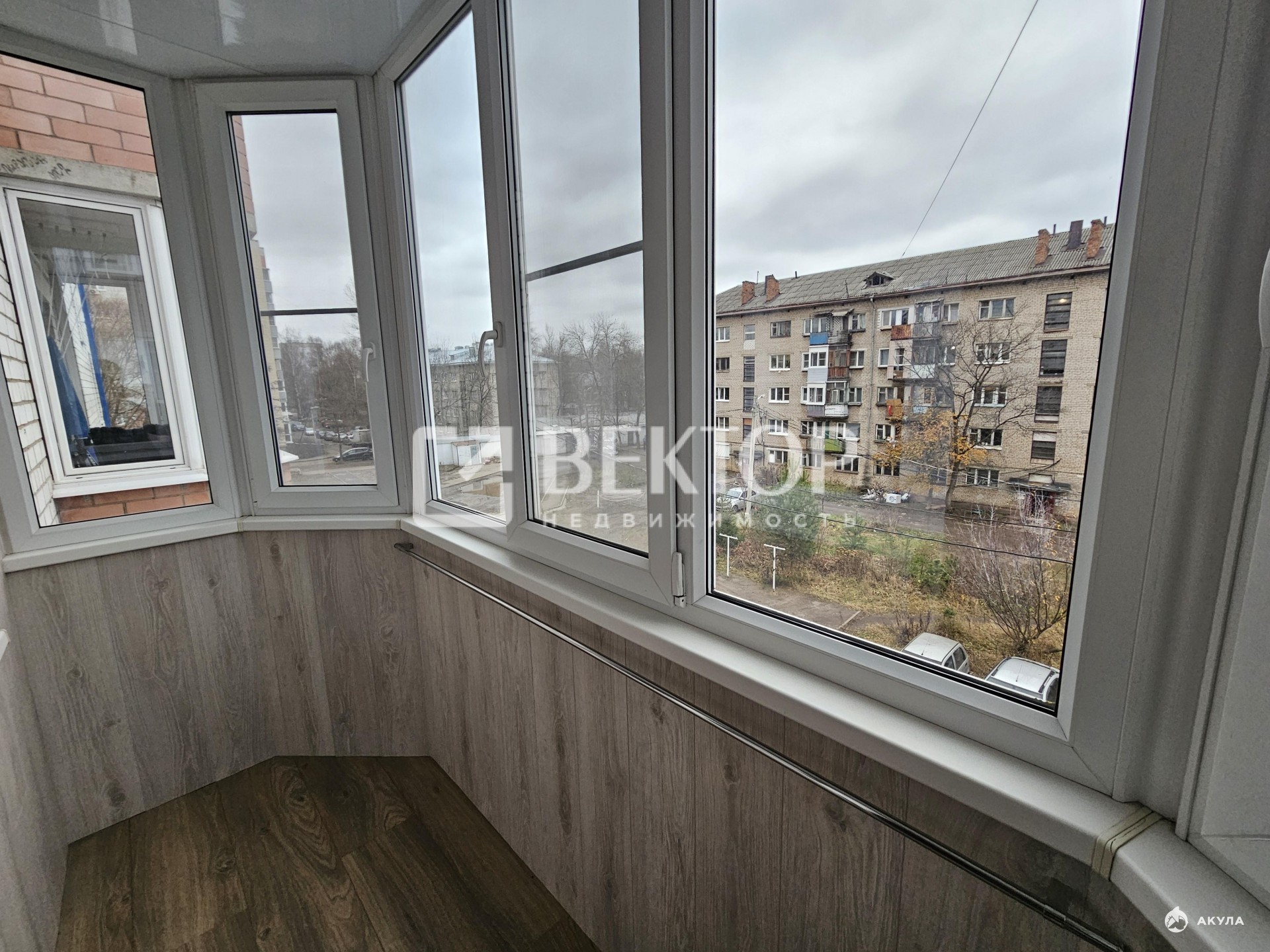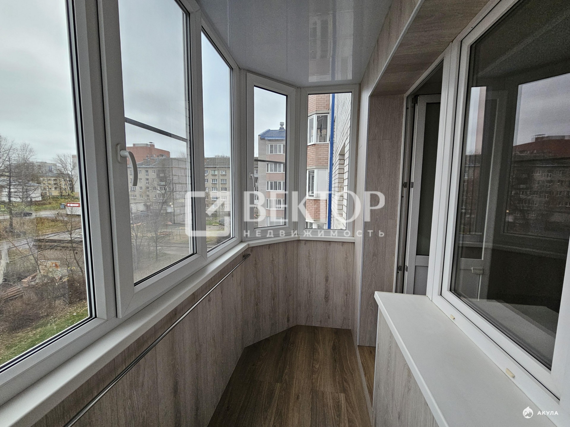 Балкон отделан ламинатом (стены и пол) застеклен двойными стеклопакетами и утеплен (подготовлен к отоплению ).