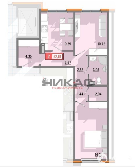 2 ком. квартира 52.8 кв.м. !
