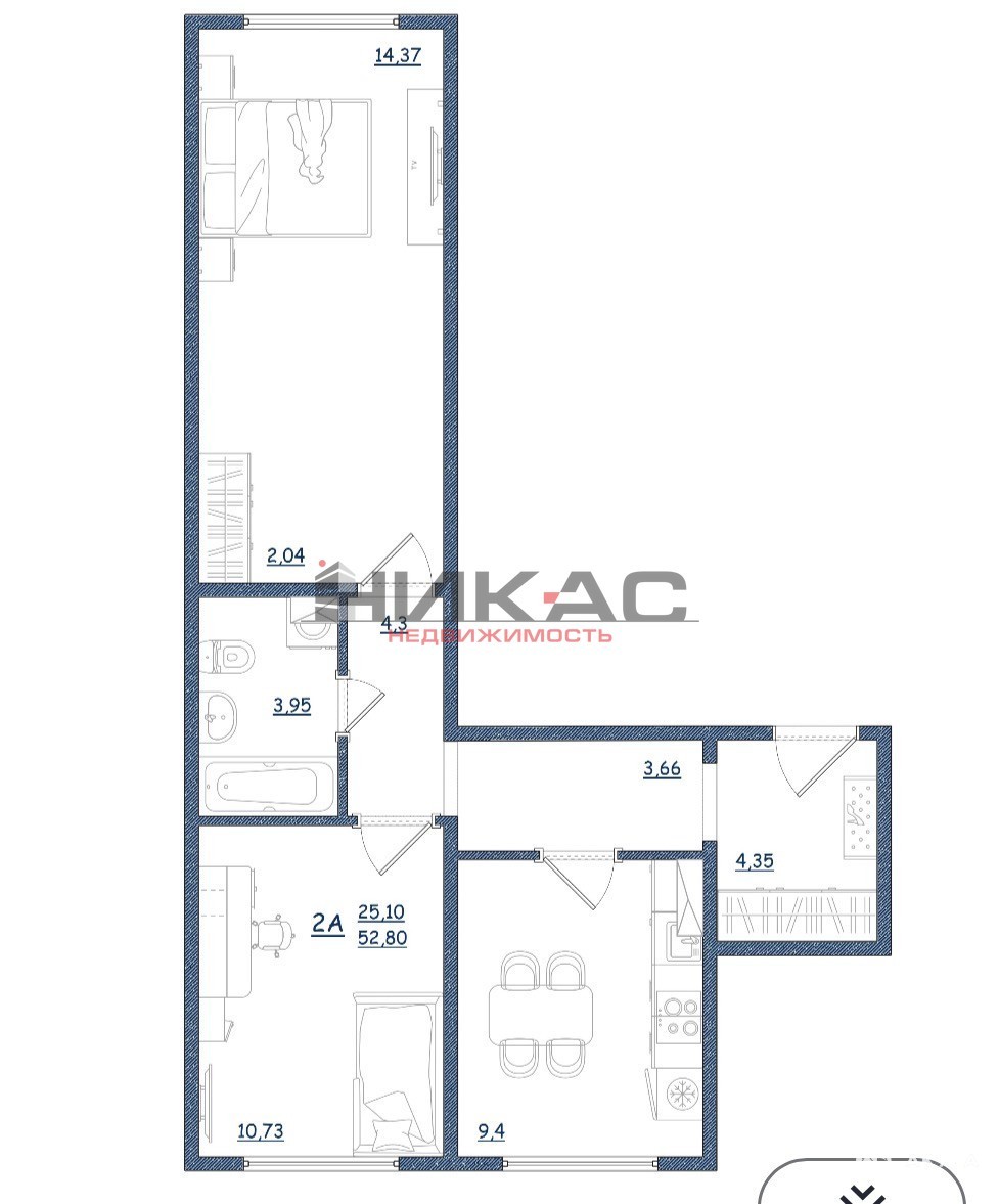2 ком. квартира 52.8 кв.м. !