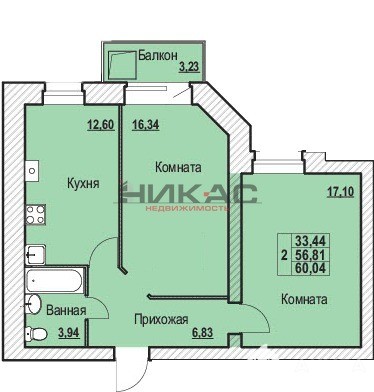 - 33.44 м²