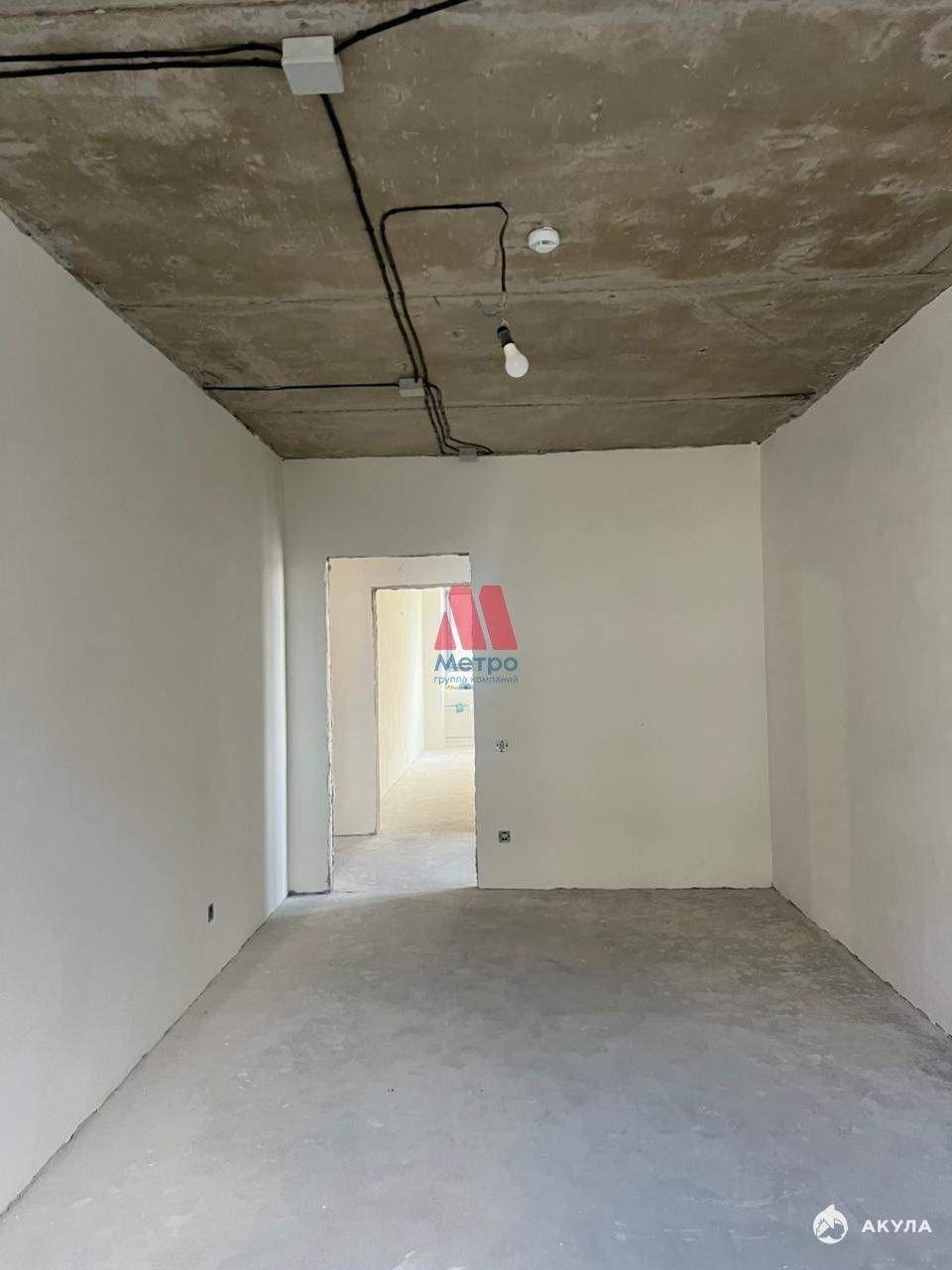 Стены выровняны и подготовлены под покраску или оклейку, пол готов к покрытию.