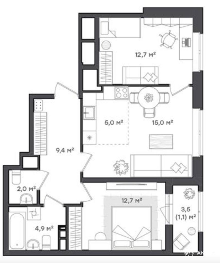 СЕМЕЙНАЯ КВАРТИРА ФОРМАТА 2+ В ДОМЕ ПОВЫШЕННОЙ КОМФОРТНОСТИ!!!
