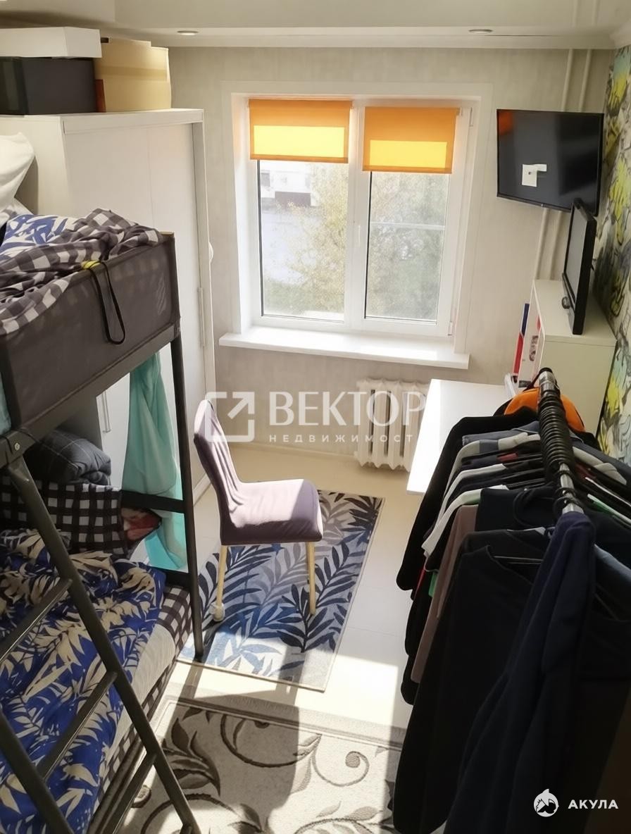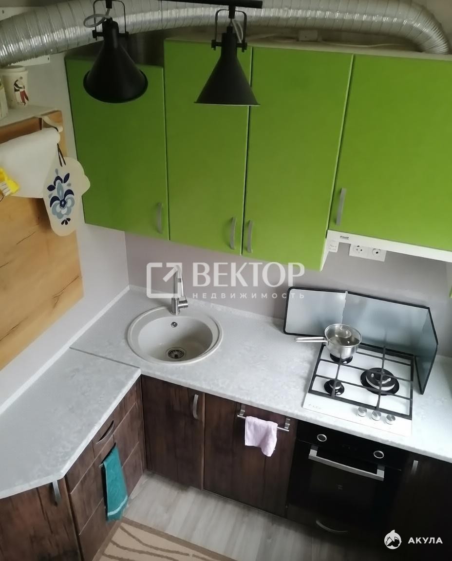 Квартира расположена на 4 этаже 5-этажного панельного дома. Общая площадь — 42, 8 м², площадь кухни — 5, 6 м².