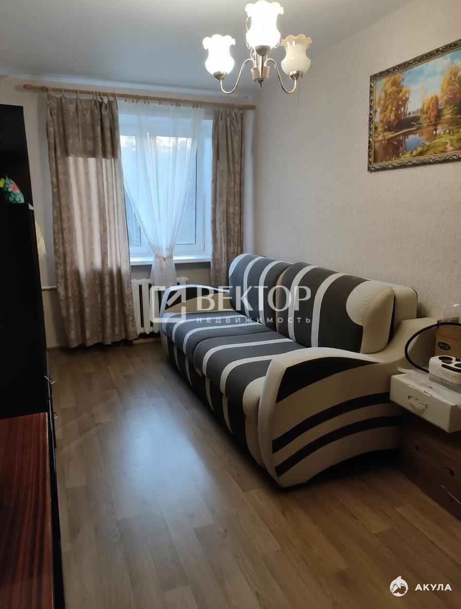 Продаётся уютная 2-комнатная квартира на пятом этаже кирпичного пятиэтажного дома. Общая площадь — 44, 8 м², жилая — 32 м², площадь кухни — 5, 7 м². Комнаты раздельные, кухня — по середине. Из окон открывается вид на Тверицкий бор. В квартире есть застеклённый балкон.
