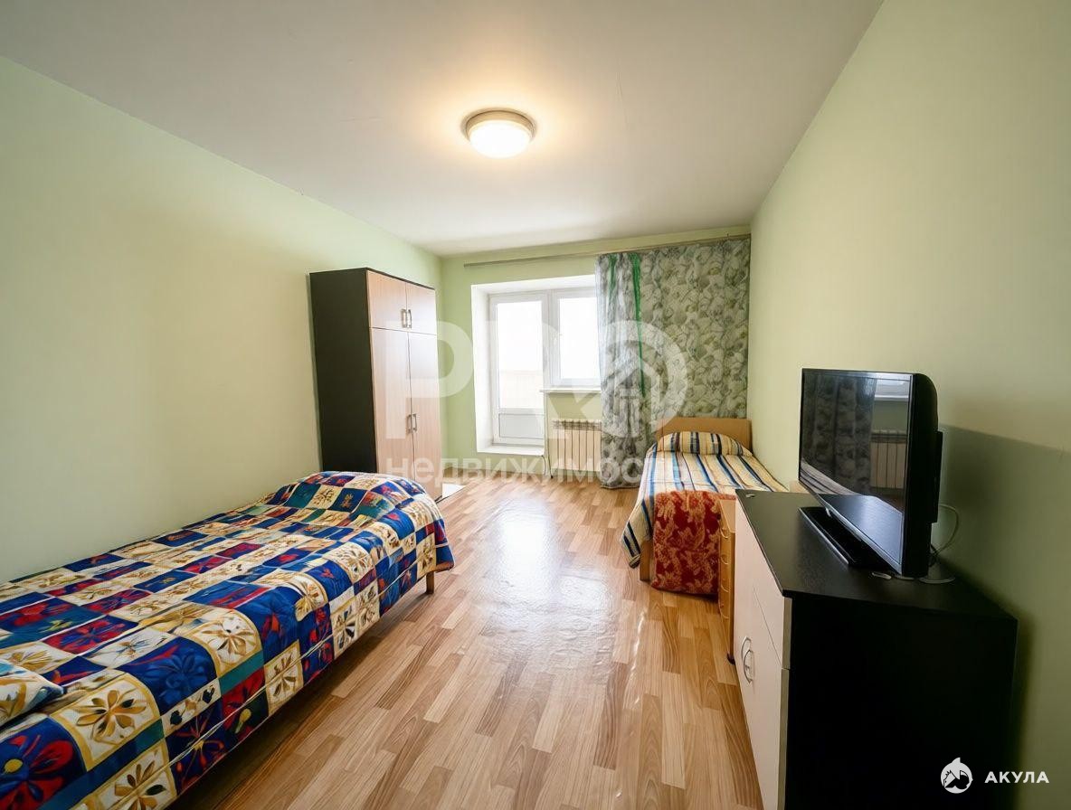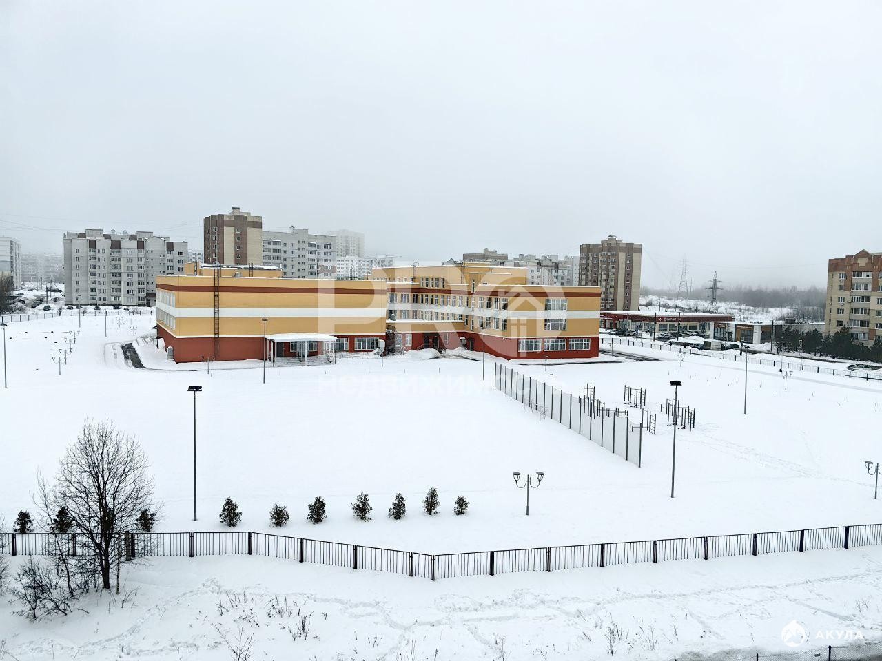 Из комнаты площадью 15 кв.м. с выходом на лоджию открывается вид на новую современную школу со спортивной площадкой.